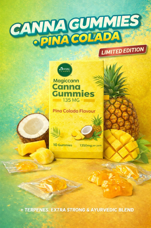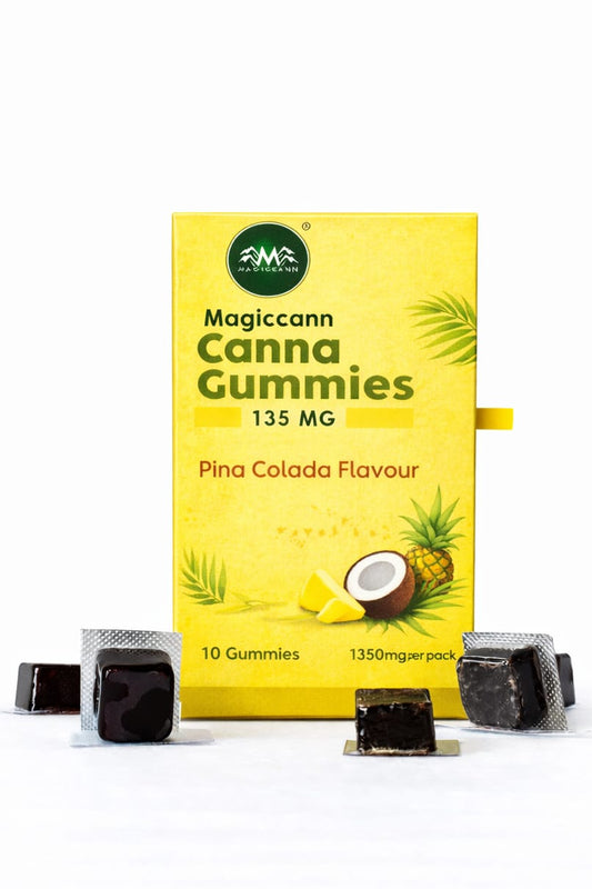 Magiccann Canna Gummies - Extra Strong : 2700mg (135mg Each) CBD + THC Gummies Pack of 20 Pina colada + Black currant flavours