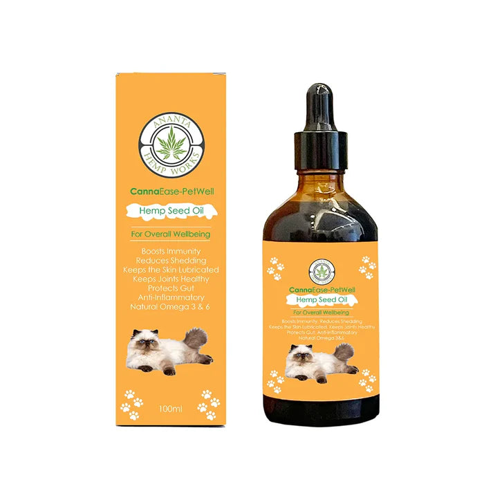 Cannaease Petwell oil for cats is cold-pressed, raw, and unrefined to maintain the beneficial properties of the hemp seed. Both application and consumption are possible. Hemp Seed Oil For Pets can be added to your pet's diet.